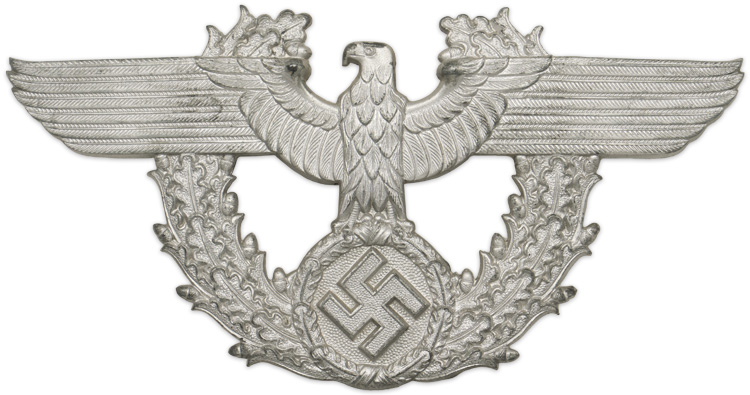 BACKGROUND: The origins of the distinctive Shako has been somewhat shrouded with the passing of time with some military historians accrediting the French with its development in the 1780's, based on the design of the civilian top hat, while others acclaim that it was based on the Austro-Hungarian or Bavarian Casquette headgear that was introduced at roughly the same time. It is known, however, that the Shako was originally adopted by the Prussian army as a experimental model in 1801 and was the standard headgear utilized by Jäger and Schützen personnel during the Napoleonic Wars. The 1801 pattern shako went through numerous modifications and in March 1854 a new pattern was officially adopted by Jäger and Schnelle Truppen, (Light Infantry and Mobile Troops). Further minor modifications to the Shako occurred in 1860, 1888, 1891, 1892, 1895, 1897, and 1915. On June 17TH 1936, Reichsführer-SS Heinrich Himmler was appointed to the newly created position of Chef der Deutschen Polizei im Reichsministerium des Innern, (Chief of the German Police in the National Ministry of the Interior), effectively giving him full control of all police agencies within Germany. As a result of this appointment and the restructuring of all the separate German state police into a single national police force new regulations were instituted on June 25TH 1936 to bring about uniformity in dress for all police through-out the country. One of the new dress regulations introduced a slightly modified version of the Shako for wear by all civil police personnel with minor variations. When worn the Shako was outfitted with a new style national eagle and swastika. Of Note: The first pattern police eagle and swastika was originally introduced on April 23RD 1934 and a slightly modified, second pattern, police eagle and swastika was introduced on June 25TH 1936 to replace the first pattern.