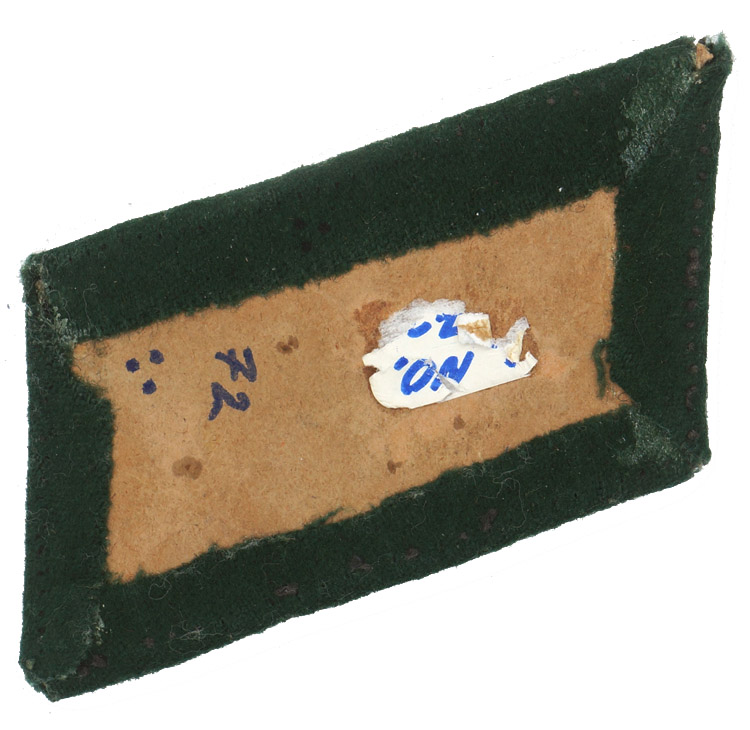 BACKGROUND: The German Customs Service can be traced back to 1834 when a Customs Union was formed to allow the separate German States to trade amongst themselves without trade and tariff taxes, while still imposing import trade taxes on other European nations. With the unification of the German States into a single nation in 1871 the Customs Service became a national paramilitary organization, under control of the Reichsfinanzministerium, (National Finance Ministry), in Berlin. The national Customs Service was still responsible for imposing and collecting import trade taxes but was also tasked with border defence duties. In 1936 the Customs Service was reorganized and given further policing responsibilities including the apprehension of individuals attempting to escape from the NSDAP’s yoke. The German Customs service was divided into two separate branches with one branch consisting of the Landzollbeamte, (Land Customs Officials), which was subdivided into the Zollgrenzschutz, (Land Customs Border Guards), and the Wasserzollbeamte, (Water Customs Officials), and the second branch consisting of the remaining Zollbeamte, (Customs Officials). On June 17TH 1936, Reichsführer-SS Heinrich Himmler was appointed to the newly created position of Chef der Deutschen Polizei im Reichsministerium des Innern, (Chief of the German Police in the National Ministry of the Interior), effectively giving him full control of all police agencies within Germany including the Customs service. In November 1934 the first Third Reich era pattern insignia including collar tabs and shoulder boards were introduced for all Customs Officials in an attempt to bring about uniformity in dress. In August 1937 new pattern insignia was introduced that was utilized for the duration of the war. Of Note: The 1934 pattern collar tabs did not denote rank, which was displayed on the shoulder boards, and were the same for all personnel while the 1937 pattern collar tabs did indicate specific ranks and/or groups of ranks with the shoulder boards also indicating specific ranks and/or groups of ranks. Also Of Note: Both of the branches of service wore almost identical collar insignia with the first branch, (Landzollbeamte), utilizing matte silver/aluminum trim and the second branch, (Zollbeamte), utilizing bright silver/aluminum trim.