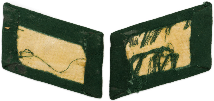 BACKGROUND: The German Customs Service can be traced back to 1834 when a Customs Union was formed to allow the separate German States to trade amongst themselves without trade and tariff taxes, while still imposing import trade taxes on other European nations. With the unification of the German States into a single nation in 1871 the Customs Service became a national paramilitary organization, under control of the Reichsfinanzministerium, (National Finance Ministry), in Berlin. The national Customs Service was still responsible for imposing and collecting import trade taxes but was also tasked with border defence duties. In 1936 the Customs Service was reorganized and given further policing responsibilities including the apprehension of individuals attempting to escape from the NSDAP’s yoke. The German Customs service was divided into two separate branches with one branch consisting of the Landzollbeamte, (Land Customs Officials), which was subdivided into the Zollgrenzschutz, (Land Customs Border Guards), and the Wasserzollbeamte, (Water Customs Officials), and the second branch consisting of the remaining Zollbeamte, (Customs Officials). On June 17TH 1936, Reichsführer-SS Heinrich Himmler was appointed to the newly created position of Chef der Deutschen Polizei im Reichsministerium des Innern, (Chief of the German Police in the National Ministry of the Interior), effectively giving him full control of all police agencies within Germany including the Customs service. In November 1934 the first Third Reich era pattern insignia including collar tabs and shoulder boards were introduced for all Customs Officials in an attempt to bring about uniformity in dress. In August 1937 new pattern insignia was introduced that was utilized for the duration of the war. Of Note: The 1934 pattern collar tabs did not denote rank, which was displayed on the shoulder boards, and were the same for all personnel while the 1937 pattern collar tabs did indicate specific ranks and/or groups of ranks with the shoulder boards also indicating specific ranks and/or groups of ranks. Also Of Note: Both of the branches of service wore almost identical collar insignia with the first branch, (Landzollbeamte), utilizing matte silver/aluminum trim and the second branch, (Zollbeamte), utilizing bright silver/aluminum trim.