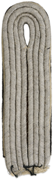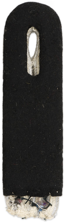 PHYSICAL DESCRIPTION: Sew on shoulder board of bright silver/aluminum Russian braid, with white wool waffenfarbe on a black wool base. The shoulder board represents the rank of SS-Untersturmführer serving in a Infantry unit. Removed from a uniform.